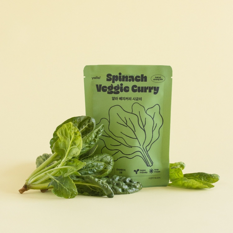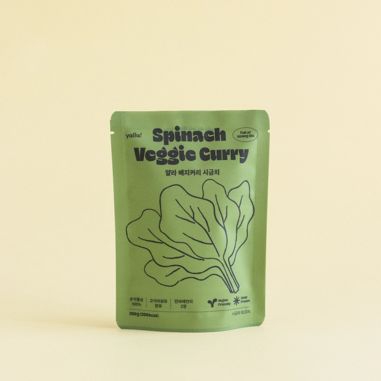 원재료명 | 양파(국내산), 냉동시금치(중국산), 정제수, 화이트빈크림소스[백태(외국산:중국, 캐나다, 미국), 캐슈견과(베트남산), 건조이집트콩, 강황가루, 카레분말], 콩식용유, 토마토페이스트, 소스, 가공소금, 쿠민씨분말, 강황분말, 커리파우더, 건조호로파잎 대두, 토마토 함유 |